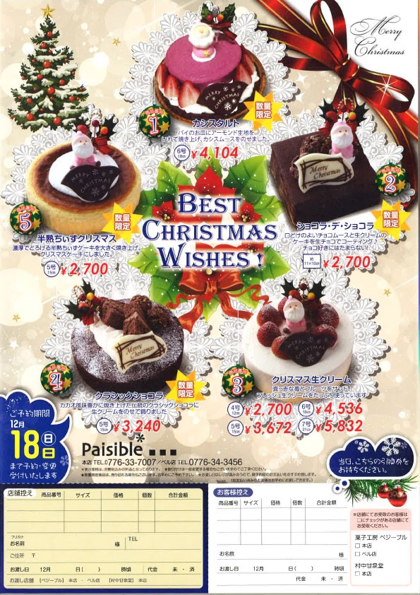ペジーブル クリスマスケーキ 11月中にご予約&ご入金で10%OFF!