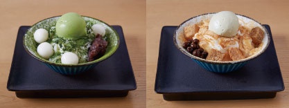 ミルク仕立てのかき氷に抹茶ジェラートと白玉をトッピング