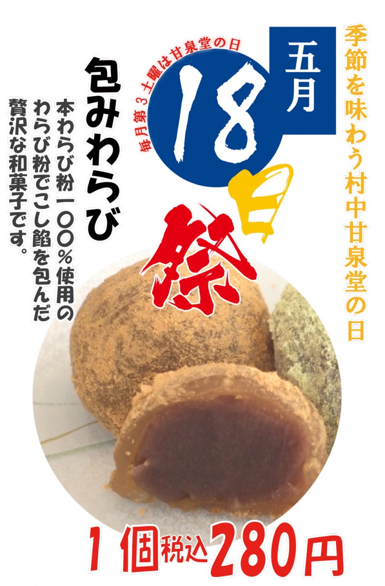 5/18(土) 甘泉堂の日「包みわらび」販売します | お知らせ | 村中甘泉堂